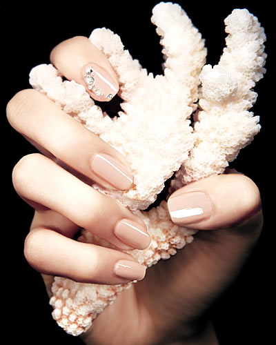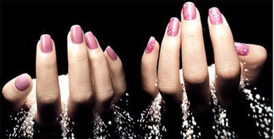 关键是选择那种隐藏着若隐若现闪光粒子的甲油。