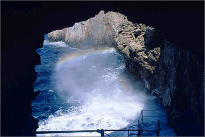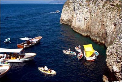 去卡碧岛(Capri)就好象去澳门一样, 船程不过1小时,几乎每位去拿玻里的游客也会顺道去窥探她享负盛名的美景。抵达卡碧岛码头后,第一时间,是前往最著名的蓝洞(Grotta Azzurra)。所谓蓝洞,是一个位于海面上的天然洞穴。入口仅1米,长54米、高15米、水深22米的洞内,会因太阳光而反射出一种不可思议的蓝色光。这里堪称全岛最拥挤之地,排队等入场的小艇全日不绝。在内的时间只得5分钟,但这种前所未见,又只此一家的蓝光,令各国游客不禁大声赞叹。