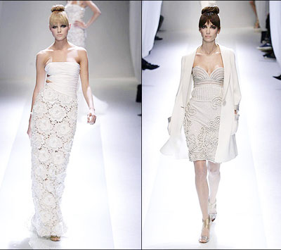 街头女孩当然穿不起Valentino以35万美元起价的高级手工成衣。这些衣服由Valentino雇佣的那些女缝纫工——拥挤在狭小工作台前的她们个个看上去都很像紫禁城中的白头宫女——在镍光灯下一片蕾丝接一片蕾丝、一颗珍珠接一颗珍珠地绣上去。除了沙特阿拉伯的公主和俄罗斯黑手党的情妇,只有那些穷奢极侈的好莱坞明星才引Valentino为知音。这不,在一个月前举行的2005年金球奖颁奖礼,HALLE BERRY所穿着的米色雪纺裙上、NAOMI WATTS的白色丝裙、CLAIRE DANES的紫色丝裙以及PATRICIA AROUETTE的红色裙,均出自Valentino。