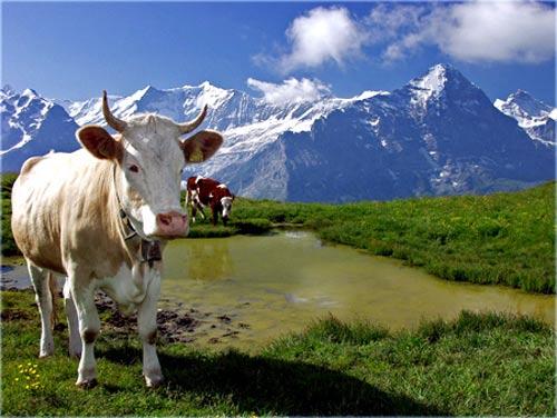 夏天是阿尔卑斯山高山植物生长的好季节。在格林德瓦不登山实在是浪费。格林德瓦的山谷可爱的地方就是,山谷绿得像翡翠,还住着瑞士最正宗的主人——奶牛,看到奶牛一脸憨相在漫山遍野中闲庭散步,背景是高耸入云的雪山,你会觉得1000年以前就是这样,现在还是这样。时间会改变很多东西,但也无法改变某些东西。瑞士人很少为外面的世界改变自己什么,这里的人都是外冷内热的坚毅的山。