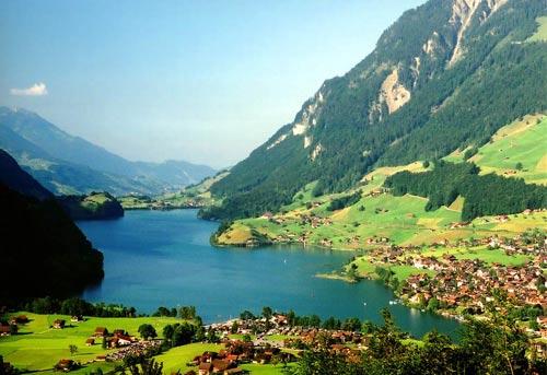一条异常崎岖的下坡山路,将我们引到一个宁静的小镇。瑞士人为了不修公路,宁愿拐弯拐到头痛。小镇的所在地是一条古冰河河谷,周围都是直落千尺的断崖,千百年来这里的瀑布从未干涸,所以彩虹一直在这里升起。