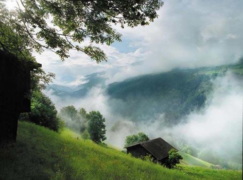 入夜很安静。山坡上你几乎听不到任何声响。在一片静谧中能真正感受到班得瑞音乐里的零压力、零负担。其实从山坡上可以没有任何遮拦地走到下一个旅店房间外面。住在隔壁的瑞士女孩对我说:“你绝对放心睡觉,就算横竖睡在山坡上也没人来打搅你。瑞士就是这样。”第二日起了个大早,似乎听到很远处的阿尔卑斯山里的狗叫。