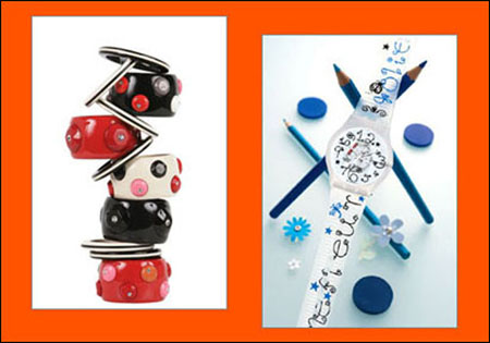 柔软的塑料表带是恣意挥洒的画布,星星、花朵、瓢虫和蜻蜓在手写的黑色文字中穿梭。