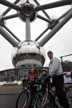 原子球是1958年布鲁塞尔举办世界博览会时所建,也是战后第一个世界博览会,它是一个将铁分子模型放大为2,000亿倍的建筑物,高约120米,中央铝制圆球部分是瞭望台兼餐厅,其它八个球是科学馆。这座建筑代表着人类进入了科技进步的新世纪,时隔半个世纪之久,仍不失科技与新世纪的意味与象征。