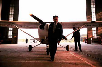 那天,我一身轻装地赶赴机场,心却跳个不停。从进入机场特别通道开始,我就进入了一种莫名的亢奋状态。一切就绪,我被领到了出发点,在机场跑道的尽头我看见了一架崭新的小飞机,我喜滋滋地奔了过去,就想往驾驶座上窜,教官一把拉住我说:“急什么,都忘记程序啦!”起飞前最重要的就是检查,我怎么把这都给忘了。