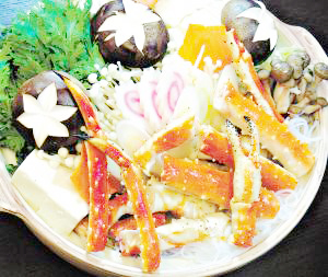 在美国只有阿拉斯加州出产王蟹,据说迄今为止捕获的王蟹最大的有25磅重,从前爪到后爪的距离为六英尺。用冰海产的王蟹来涮火锅,很有一种冰火交融的感觉。王蟹的肉质带有淡淡的甜味,肉质也比较滑,嚼起来很有质感。火锅配上豆腐、菌类等,也比较清淡。