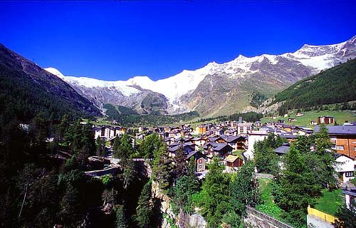 萨斯费(Saas-Fee)位于萨斯山谷的中心地带,是个充满生机的阿尔卑斯观光胜地,包围在冰河和阿拉林峰、阿尔卑呼贝尔(Alphubel)、多姆山(Dom)等4,000多米的群山中,有“阿尔卑斯明珠”的美誉。此外,因为27条冰河自山顶向山脚方向流淌而下,所以又被称为“冰河村”。