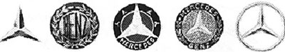 1909年,第一个图案———三芒的“幸运之星”终于被注册为汽车的logo,随着岁月流逝,星星图案设计让位给了圈着罗马月桂花环的新意念。接着,在20世纪20年代,花环又被围着圆圈的三角星logo取代了。最后一锤定音的,是现在仍旧在使用的围着圆圈的大星星。