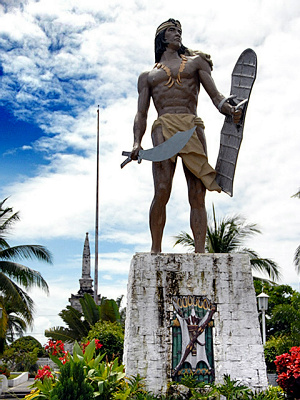 四百八十六年之后踏上这片土地,当年那著名的战斗早已无迹可循,只有后人在古战场的地点竖起了两座纪念碑,分别纪念麦哲伦和拉普拉普。历史总是喜欢嘲弄创造它的人类,这两座纪念碑相距不过百米,空气中似乎有些尴尬,拉普拉普不愿面对这个老对手,默然转过身去,左手持盾右手握刀,在阳光里自信地展示着古铜色的健硕和胜利者的骄傲。