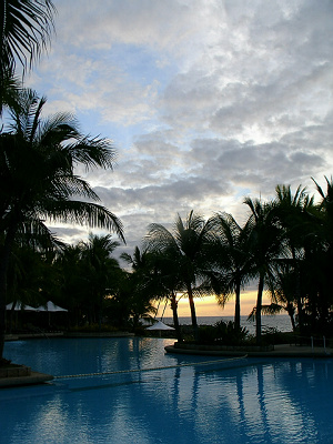 夜宿两纪念碑数百米开外的麦克坦香格里拉度假村。睡梦中听闻麦哲伦和拉普拉普的刀兵相击之声,一惊跃起,掀起窗帘,星空下的海滩怎又归于沉寂了?一丝曙光扯开了天际线,呼应着渐渐黯淡下去的星光。我也无心睡眠,走去海滩看日出。轻涛拍打礁石的声音愈发映衬着海滩出奇的安静,观景亭里有个熟悉的身影,母亲竟也来看日出了。
