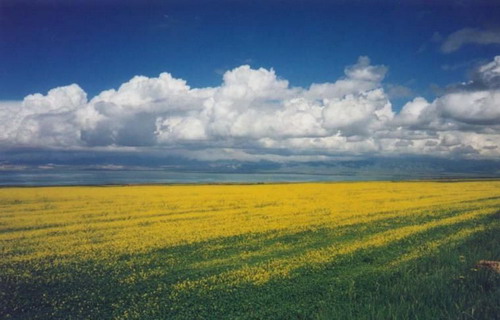 到了7月前后,南方的油菜早已扬花结籽收获入仓,甚至变成清亮的油液。而海拔3200多米的青海湖一带,此时的油菜花却正开得喧嚣。浓艳的黄花,紧围着青海湖大半圈湖岸,足有百万亩,在高原深蓝的天空下,繁花金黄一片,嵌镶在湛蓝的青海湖岸上,无际无边。