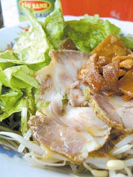 主角米粉当然也相当出色,几乎每个街头巷脚,都有米粉婆挑着一张炉头、两把桌椅,在浮沉滚动的骨头汤中,米粉香飘四野。在路上遇到背包客,闲聊中大家常常会抱怨在越南总是吃不饱,其实不是不饱,只是味觉受了太多诱惑,总要吃它几碗才安心。