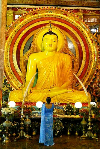 斯里兰卡是一个信奉佛教的国家,在公路两旁,随处可以看到一些小型的寺庙和供奉台,如果是寺庙,就可以看到白塔和婆娑的菩提树,供奉台往往就是一个一米多的高台,拾级而上,是一尊佛像。在科伦坡老城街头,印度教、佛教庙宇以及伊斯兰教的寺院和基督教的教堂交相辉映。