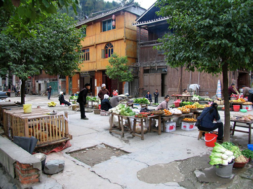 还算有点特色的菜品,是一般人吃不惯的腌鱼和腌肉。酸酸辣辣的腌肉,切成小丁,和青菜抄在一起,就着米饭,香糯可口。我坐在小桌边的小凳子上,尝着侗人自己种的稻谷;看着街上殷实地脚步,享受着少有的满足。