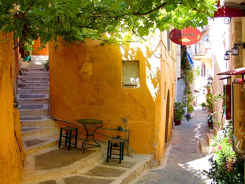 无穷无尽的蓝天和湛蓝的爱琴海中,最迷人之处威尼斯式旧港口,宽阔码头立在水中,海岸上风格多姿的鲜黄、澄蓝旧建筑临海而立,鲜艳的色调点缀着圆弧状的港湾,白天与夜晚,港口都很热闹,造型可爱的马车提供绕旧城区的行程,走在古建筑物斑驳的巷弄里,多元的建筑风格,集拜占庭、威尼斯、土耳其、新古典主义于一身,其间屋舍之格局色调,五彩斑斓间,衬托上咖啡座中岁月痕迹的木桌木椅,整个感受就是很古朴淳厚,独特地中海风情让人流连忘返。