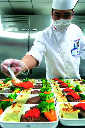 为了让乘客在空中也能胃口大开,飞机餐的制作,还有着自己的秘密。“为保证高空中食材刺激新鲜的滋味,飞机餐所有的主菜通常都会浇上特别调制的汁。”有着20多年空厨经验的刘大厨透露自己的烹饪心得。“飞机餐只为美味,不分菜系,类似于口味浓烈的东北菜,只有这样,才能满足乘客在高空的味觉需求。”