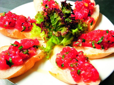 这里的主厨来自古巴。古巴菜和拉丁美洲各国的菜都多多少少受到法国菜和西班牙菜的影响,所以加勒比海餐厅的菜是以西班牙菜为主的拉丁国际“混合”菜——“番茄香蒜和鲜紫苏叶面包”、“鹅肝酱配脆皮苹果球”、“柠檬橙汁腌鱼和虾仁”、“凤尾鱼和海鲜鸡蛋小碗”等。