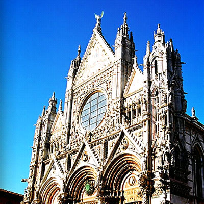 火车行走了约2个小时,远远的就可以看到锡耶纳塔楼的剪影了。锡耶纳,在绘画语言里即为赭黄色,这也成了这座中世纪古城的主色调。从来没有哪个中世纪的城镇能像锡耶纳一样,把一座市民之塔造得那么高,那么飘,直指蓝天,什么都不放在眼里。这个城镇的居民对自己城镇的历史如此自傲——5万市民中的绝大多数都会乐意向你讲述12世纪到14世纪之间这个城市所享有的经济实力,欧洲第一家银行是如何在这个小城诞生的,几世纪以来它与周边城邦的恩恩怨怨,它所经历的大大小小的战争。