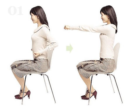 将两臂伸展至和肩部平行,同时手掌握拳,胳膊肘向后倾,然后用力将胳膊伸展至和肩部相平,每天反复20~30次,会感觉到肌肉非常舒服。