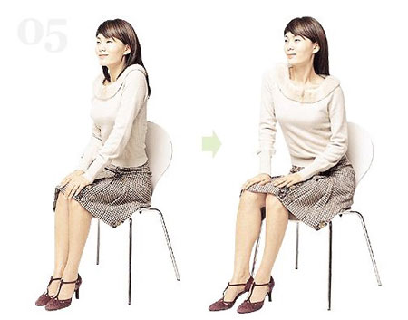 将两手放在膝盖上,然后将重心分别放在左右腿上,这是骨盘能够得到充分的运动,每天反复50次。