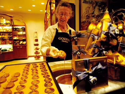 这里工作人员都像左岸咖啡店里面的服务生一般优雅。他们气定神闲地向我解释着比利时巧克力的奥秘,并且耐心地手把手教你如何品尝巧克力。经过这里的教育洗脑,你才发现这种把巧克力幻化成一首高潮不断的诗歌的艺术。“先通过拇指和食指的轻微摩擦让巧克力变热,充分体会散发出的香味,再咬下一小口,让它在舌尖上慢慢地融化。此时请你一定要稍稍屏住呼吸,然后一点点地用鼻子把气呼出。”