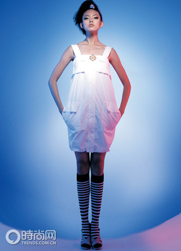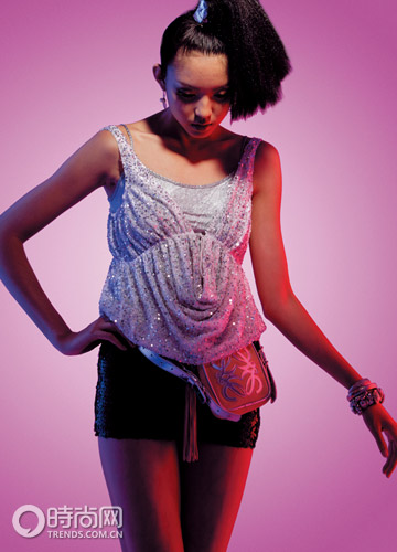 珠片上衣、腰带 Patrizia PEPE 短裤Sisley 漆皮檐帽 United Colors of Benetton 手镯Chanel 领带 私人物品