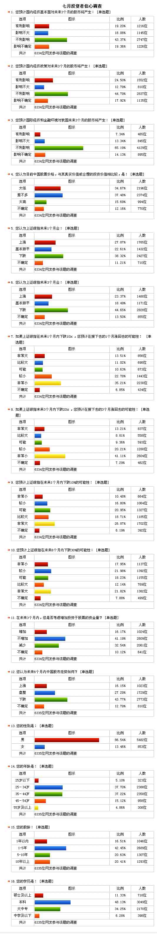 网络版专稿 实习记者 韦承武 7月18日,据证监会官方网站“2008年7月中国证券投资者信心调查”显示,多数参与网上在线调查的投资者对未来6个月内股市的走势持悲观态度。
