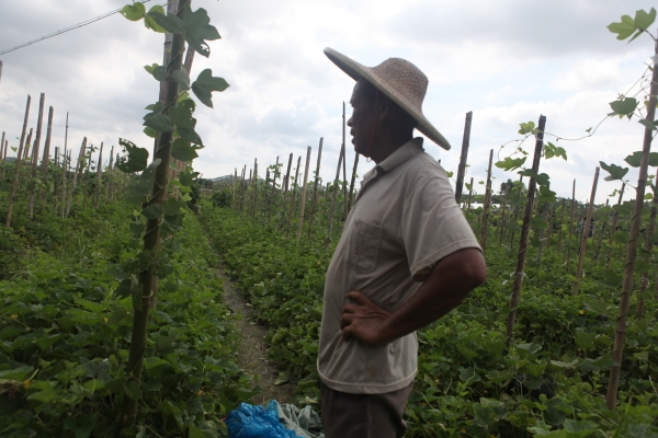 高明更合镇军田村的苦瓜田,这些苦瓜早可以采摘,但根本卖不出去。