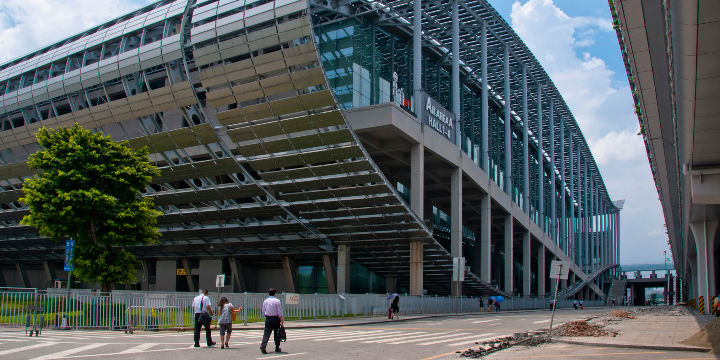 广交会展馆外,行人、车辆络绎不绝,站岗的安保人员用英文给外国人指路,多个入口的进馆人员陆续过安检,展馆前的空地上经过一支巡逻的武警。这并不是广交会展馆人流量最大的时候,人流量的高峰期通常出现在每期展会开始的前两天。