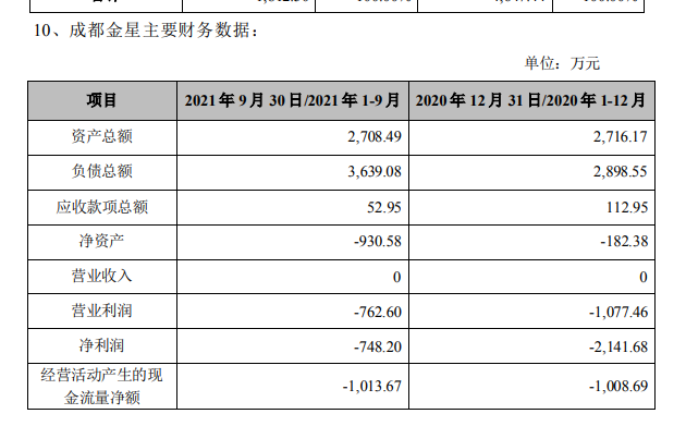 《每日经济新闻》记者注意到,2020年,中恒集团(600252,SH)入主莱美药业后,上市公司就开始陆续剥离一批资产。金星药业是莱美药业早年收购的公司,但其2020年、2021年1~9月的营业收入都为0,净亏损为2141.68万元、748.2万元,财务数据并不好看。