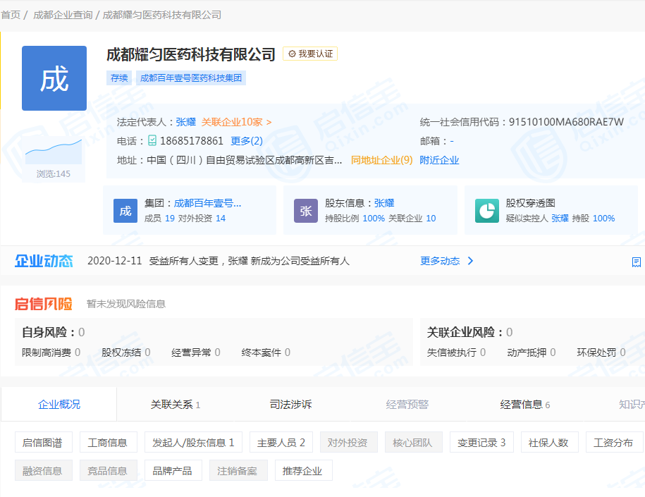 这样一家成立不足一年的公司是否有足够的经济实力?针对这一疑问,《每日经济新闻》记者拨打耀匀医药最新的工商登记电话,但无人接听。