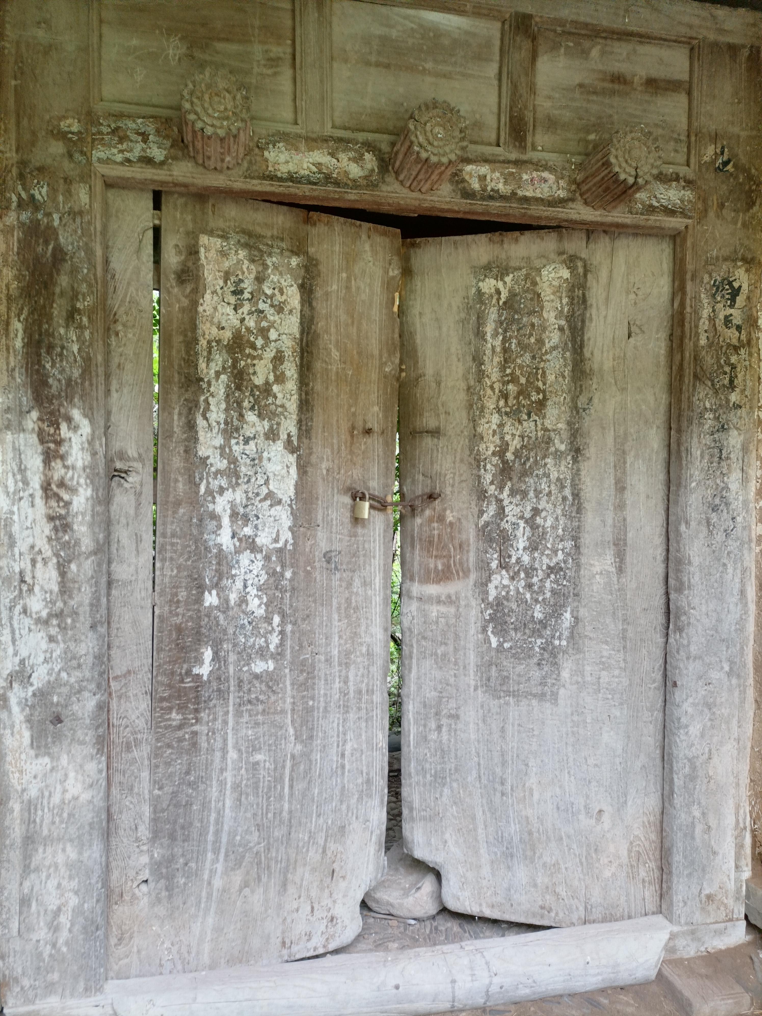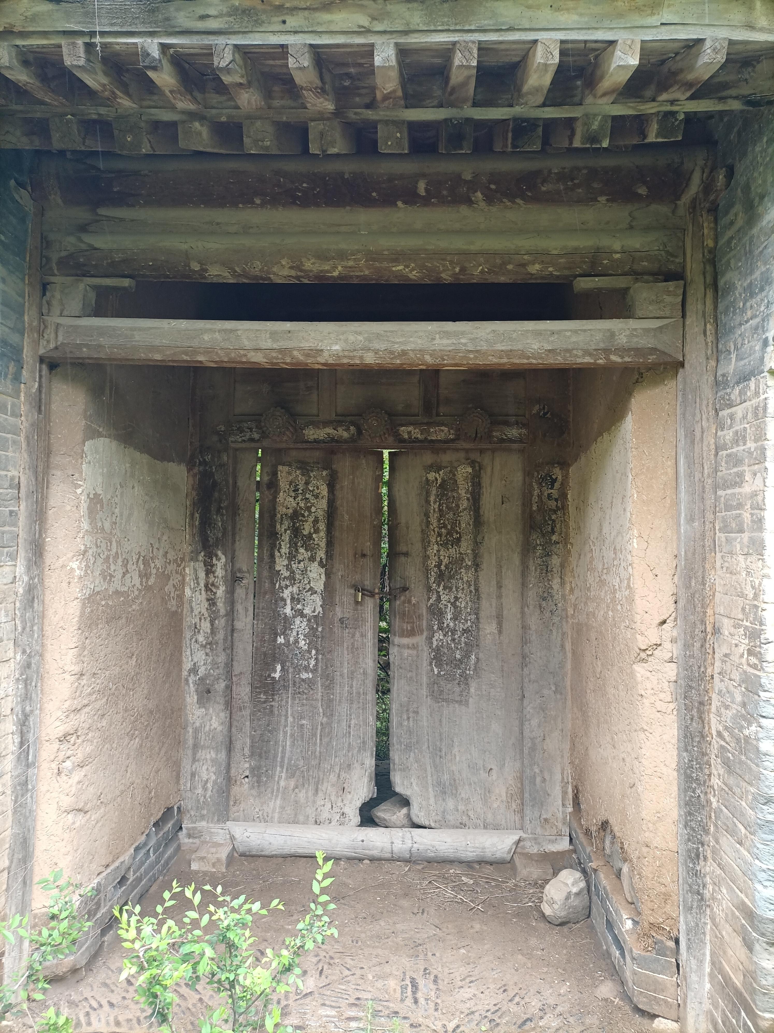 门为很厚的木材制造(11),门上上锁,住户早已迁走,无人居住。