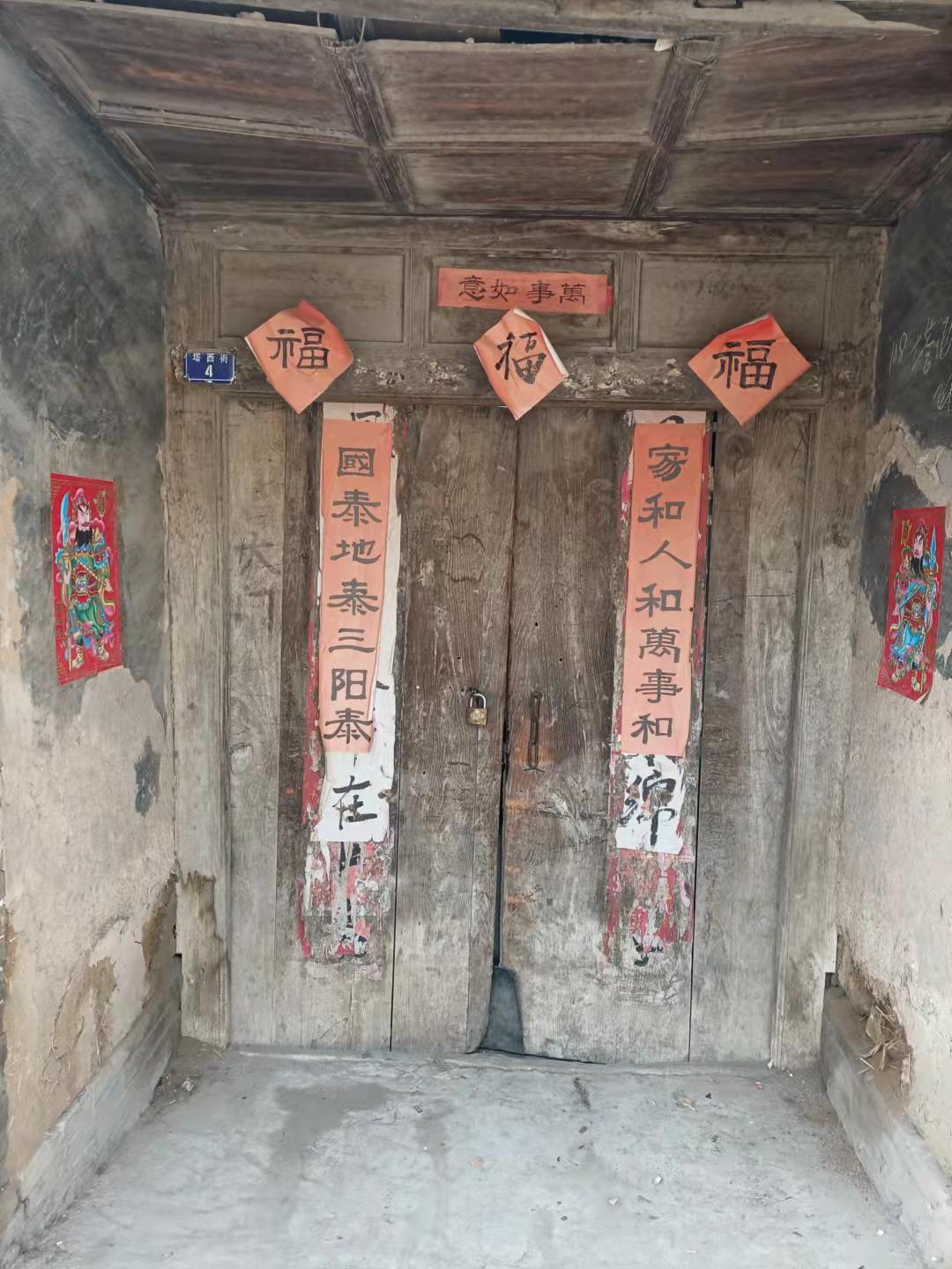 后到当地的另一个村子,见一户现今仍有人居住的院子,见其大门门楣上也有三个户对。上面各贴一“福、禄、寿”字(图13)。