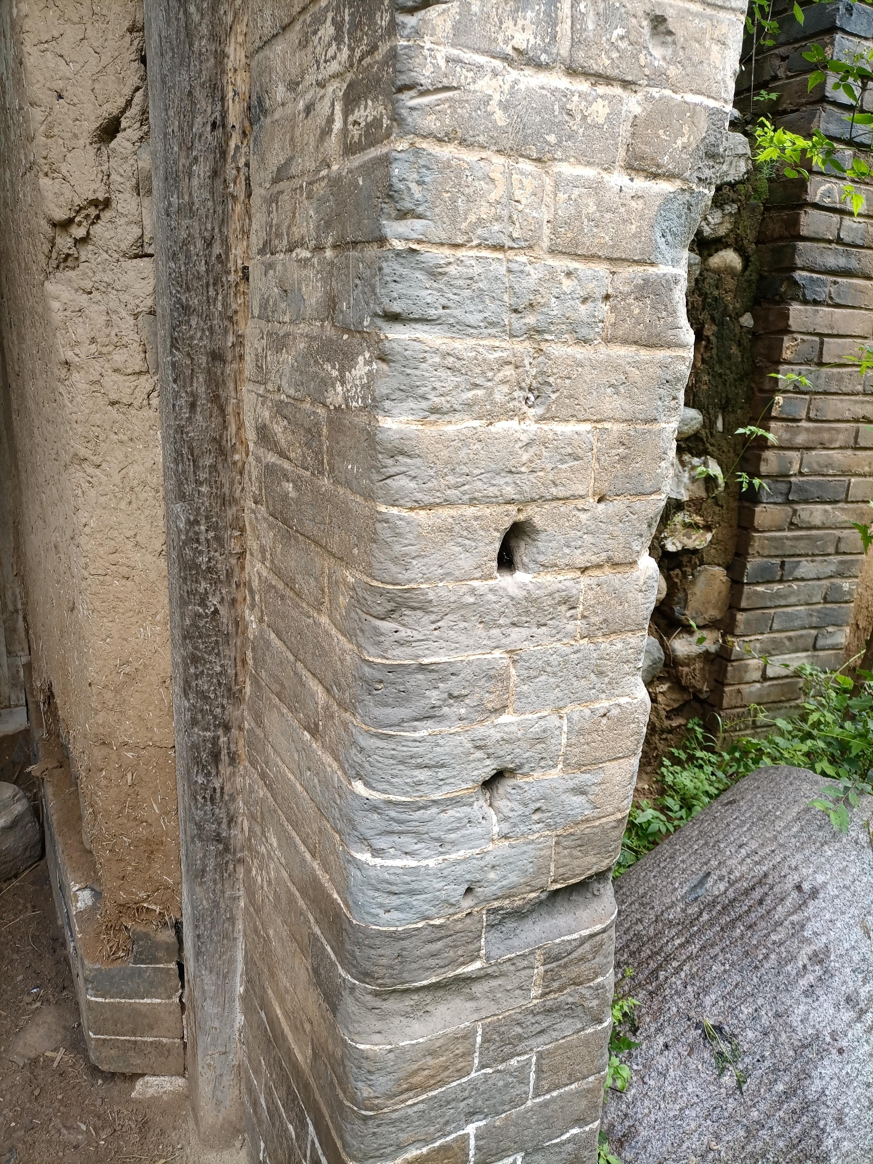 两侧墙壁上的青砖有明显的被磨损的痕迹(图10),可以想见,这是这家人经常背着柴禾或重物进出大门的结果。