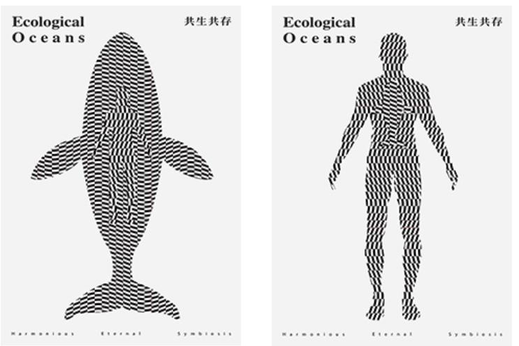 本作品为系列作品,两幅作品内容分别是鱼在人内和人在鱼内,利用视觉错觉原理,使观者观看时有种动态之感,借此探讨人类和自然的共生共存的关系,以此来探寻对于人类来说,"恒"究竟意味着什么。