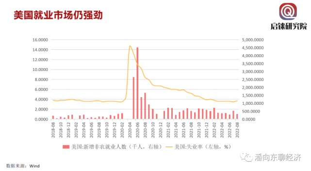 另外,美国就业市场依然强劲,美国8月新增非农就业31.5万人,高于预期值30万人,失业率3.7%,创今年2月以来新高;劳动参与率62.4%,为疫情以来最高。