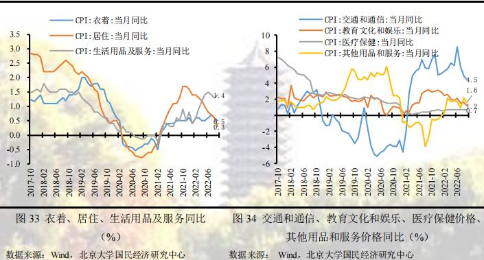 从环比看,非食品价格环比不变,较上月上升0.3个百分点,影响CPI下跌0个百分点。受国际油价下行影响,能源价格下行带动工业消费品价格维持低迷;受疫情多点散发叠加出行需求减弱影响,服务价格下降,飞机票、宾馆住宿和旅行社收费价格分别下降9.9%、2.9%和1.3%,但夏秋换季上新,服装价格上涨0.8%。