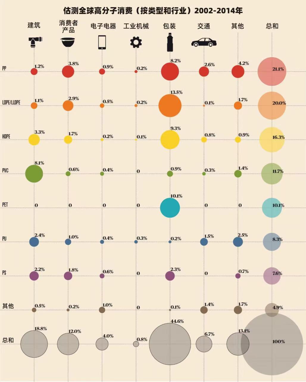 图1: 2002-2014年按类型和行业全球高分子消费