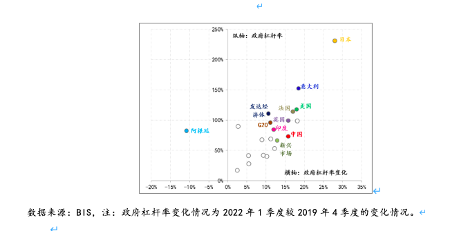 图6:主要经济体政府杠杆率及变化情况
