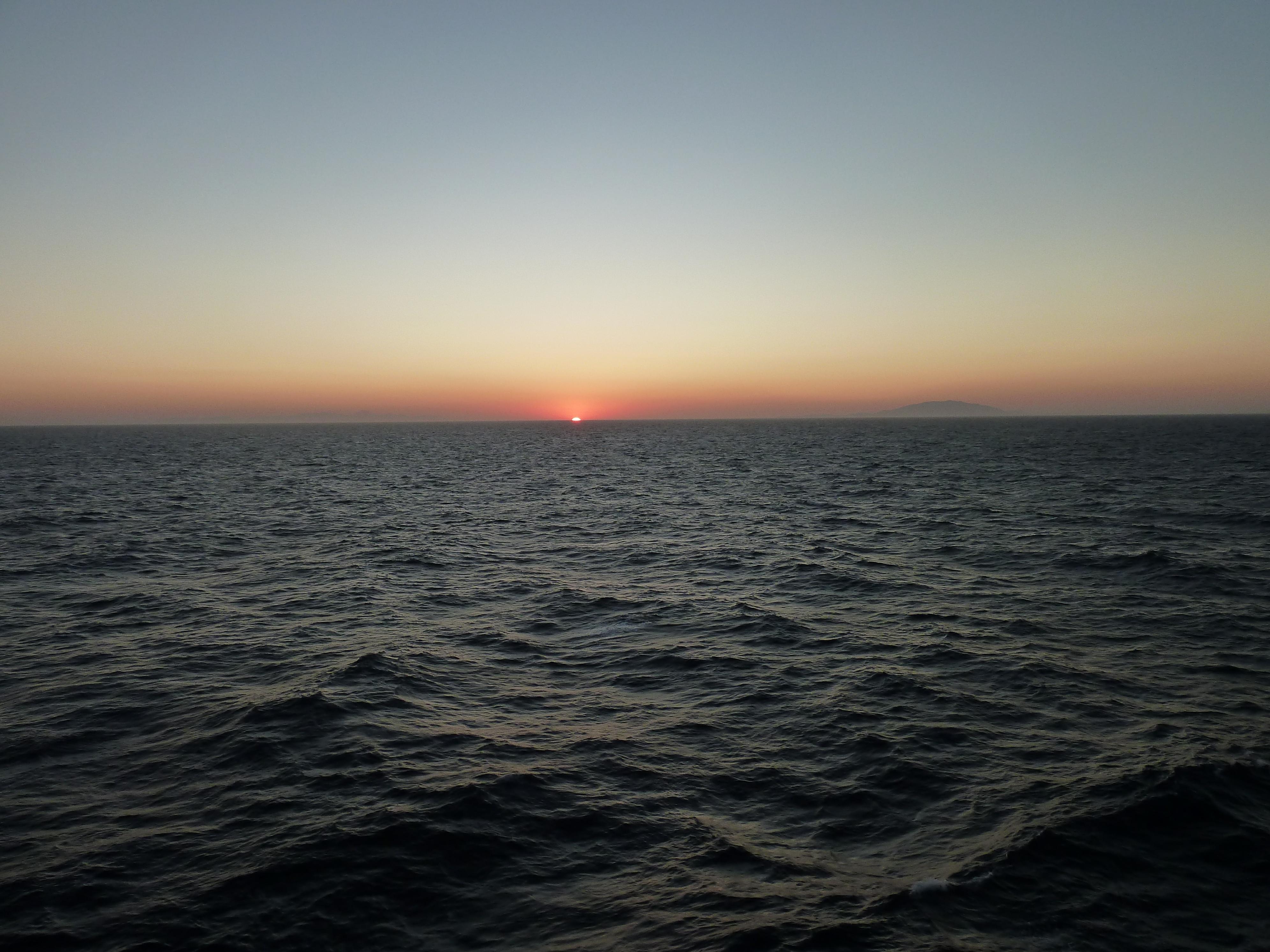 我们在海上100多天,深切地感受到了海洋强大的生命力、包容性和变化万千。海洋温和时如丝绸般柔软,暴戾时如钢铁般坚硬,我们陶醉在海洋幻化的无垠美景中:当天空晴空万里时海就是蓝色的,当天空阴云密布时海就是黑色的,当夕阳西下时海就是金色的,当晚霞满天时海就是红色的……我们也身陷在海洋制造的艰难和险恶中:我们一次次从被巨浪掀起的邮船床上掀落到地上,一次次被晕船的剧烈头痛和呕吐逼迫到无路可逃,一次次被邮轮突然因故障而停滞在茫茫大海上和可能遭遇的危险而面对生死……