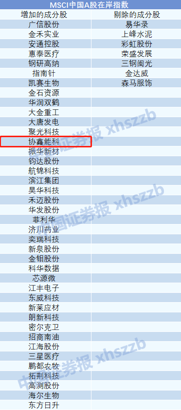 全球影响力最大的指数之一明晟(MSCI)半年期指数调整名单于11月日30日收盘后正式生效。协鑫能科(002015.SZ)获其认可,成功入选MSCI中国A股指数。