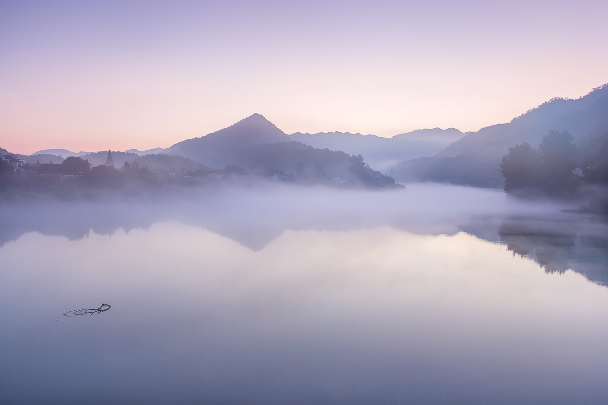 黄昏,小溪从山间汇入青弋江的寂静