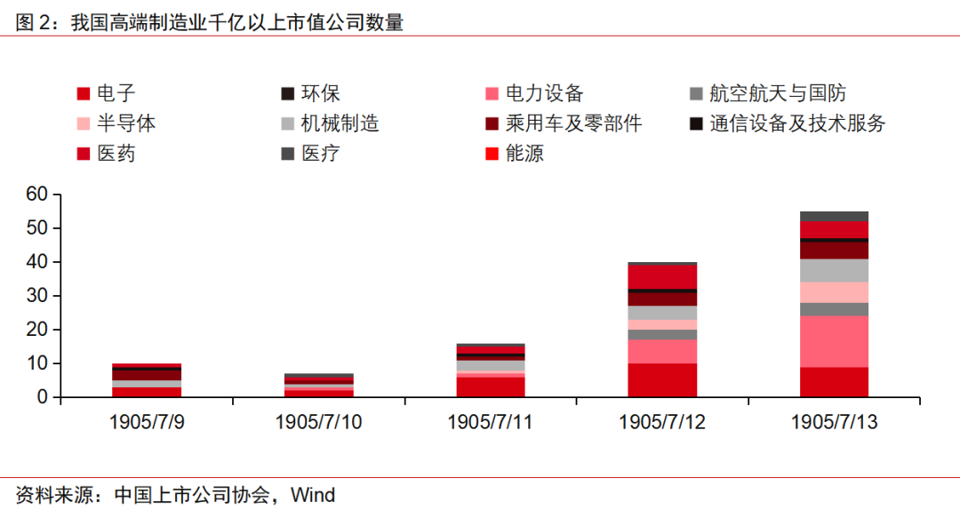 受益于国家产业政策扶持、国际环境改变和我国产业结构转型升级的历史机遇,我国高端制造业上市公司数量持续增加。尤其是2018年以来,随着自主可控的加速推进,半导体、高端机械制造迎来爆发期;受双碳目标、国际能源短缺、电能替代等驱动,风电、光伏、储能、新能源智能汽车、交通装备电气化等高速发展。高端制造业上市公司发展呈现出以下七大特点: