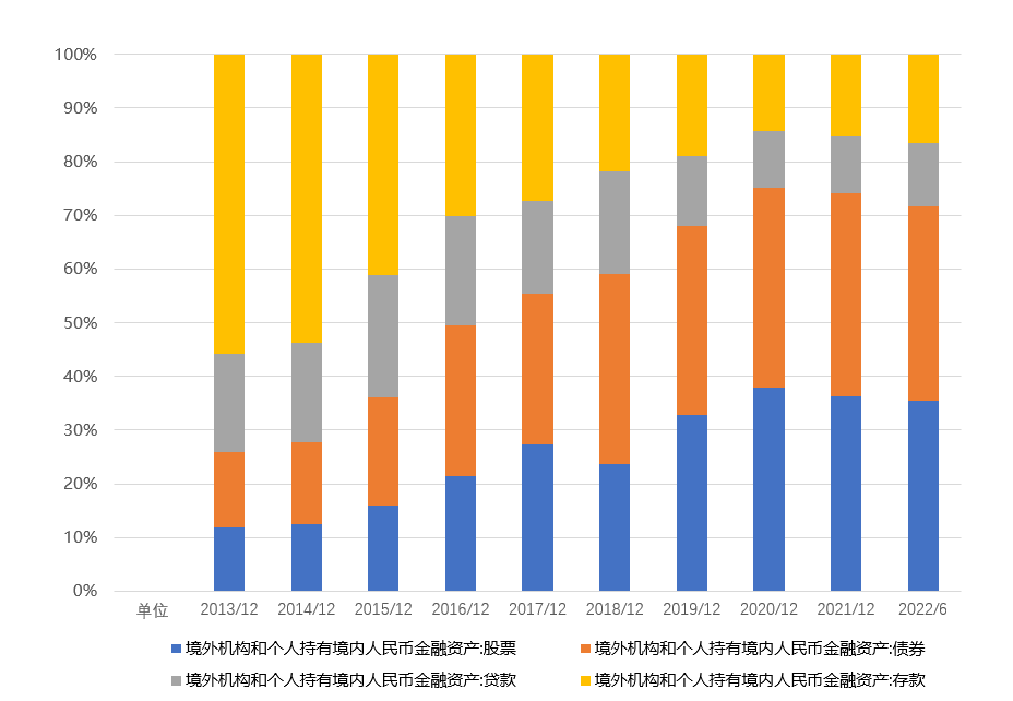 图2 截至2022年6月末,境外持有人民币资产中债券的占比为40%