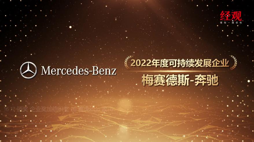 梅赛德斯-奔驰荣获“2022年度可持续发展企业”大奖。2022年是奔驰在华公益第十五周年。作为在华公益先行者,奔驰秉持“商责并举”可持续发展理念,在全面布局绿色价值链、绿色生产、绿色产品、绿色运营及绿色零售的同时,亦通过奔驰星愿基金这一开源性的公益平台,坚持多元关注、动态聚焦的原则,不断创新和迭代公益理念与项目,广泛连结伙伴打造公益共同体,践行企业社会责任,共创社会可持续发展未来。奔驰在华公益聚焦从环境保护领域的“自然之道”起步,延伸至“人文之道”领域深耕发力,覆盖驾驶文化、教育支持、文化艺术及社会关爱领域。到2022年底,奔驰累计公益投入达到3.2亿元,为超过150万人创造了更加美好的生活。