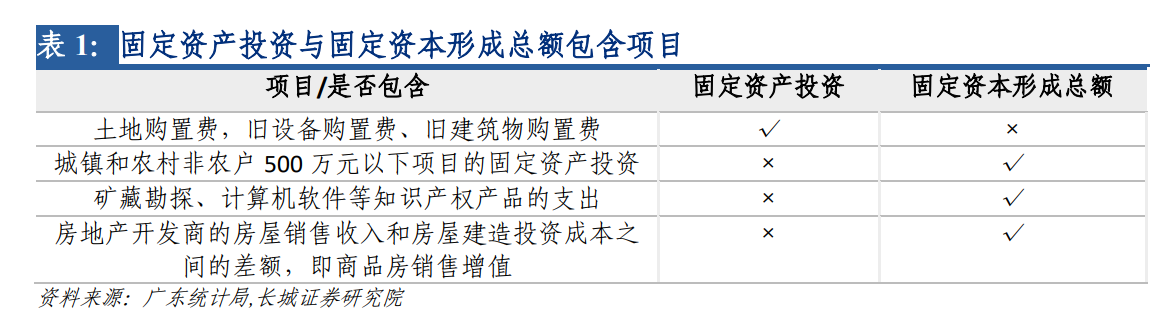 由于实际资本形成额同比增速每季度可根据统计局公布的初步核算数进行倒推,为了提高对GDP资本形成分项的精度,我们调整之前的模型,对实际资本形成额同比增速进行跟踪拟合。根据广东统计局,在支出法GDP核算中,固定资产投资统计数据是核算固定资本形成总额的主要基础资料来源,但两者存在一定差别,主要是固定资本形成总额扣除了土地购置费用,并且进一步增加了商品房销售增值。