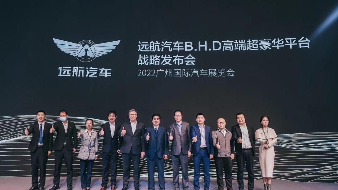 2022年12月30日,远航汽车在广州车展上发布了旗下高端豪华纯电平台——B.H.D平台,并携远航Y6、远航Y7两款豪华轿车,和远航H8、远航H9两款豪华SUV亮相车展。