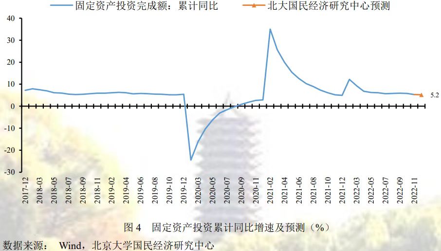 从拉升因素看:第一,制造业投资保持相对较高增长。12月5日央行降低金融机构存款准备金率0.25个百分点,有利于促进综合融资成本稳中有降。另外,根据党的二十大报告提出“推动制造业高端化、智能化、绿色化发展”来看,未来可能会催生大量的制造业投资需求,将会支撑高技术制造业投资增速,从而带动制造业投资增长。然而规模以上工业企业利润同比连续下滑也将对制造业投资形成一定下行压力。第二,基建投资增速不断加快。在前期专项债不断扩容、政策性金融工具持续加量的支持下,实物工作量在12月加快形成,同时12月20日召开的国务院常务会议要求,推动重大项目建设和设备更新改造形成更多实物工作量,符合冬季施工条件的不得停工,有助于促进基建投资增速不断加快。第三,民间投资增速逐步回暖。政府提出推进并扩大民营企业债券融资支持工具,支持包括房地产企业在内的民营企业发债融资,大大提振了民营房地产企业投资信心,由于房地产投资是民间投资的重要组成部分,这一举措将直接推动民间投资加快恢复。