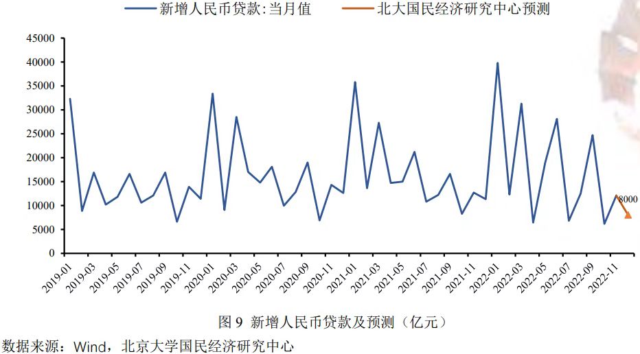 综合而言,尽管国内陆续出台稳楼市的积极政策,但随着疫情防控“新十条”的发布,疫情感染的短期冲击对宏观经济的影响较大,经济运行受阻严重,12月整体信贷需求减弱,预计2022年12月新增人民币贷款8000亿元,同比少增3300亿元。