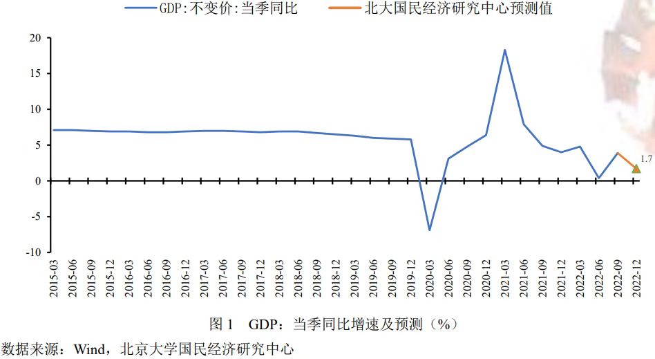 2022年第四季度以来,中国面临的国际环境仍趋复杂严峻,全球经济海外需求总额收缩进一步显现,疫情对宏观经济的扰动加剧,国内经济复苏进程明显放缓。防疫政策不断优化,国务院防疫二十条新规和“新十条”规定陆续颁布以后,市场信心大力提振,全面助力社会面复工复产,但随着国内疫情政策转变,国内各地疫情陆续迎来一轮高峰,对整体经济造成较大影响,预计第四季度GDP同比增长1.8%,较上个季度下降2.1个百分点,2022年全年GDP同比增长2.7%,较去年下降5.4个百分点。